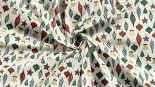 - Ecru katoenen kerststof – kerstballen met goudfolie