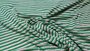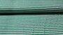 Gestreepte stretch jersey stof. De strepen hebben de kleuren groen, wit en grijs.