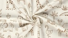 - Naturel gebroken witte jersey stretch stof met getekende safari print