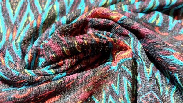 - Chiffon stof met Inca-print – Groen, bruin, zwart, rood
