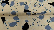 - Fibre Mood Crepe Stof met Dots – Ecru & Blauw – 100% Viscose