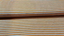 - Gestreepte tricot stof (oranje, licht grijs en wit)