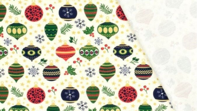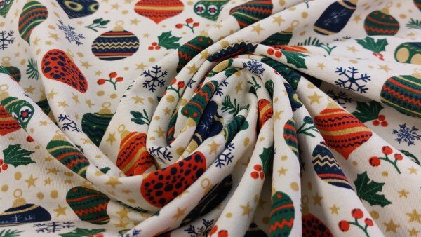 - Ecru French Terry Stof met Kerstballen – Premium Kwaliteit van Nooteboom