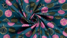 - De Kleur en Print: Petrol blauw is een trendkleur deze winter – niet te fel, niet te donker, maar precies datgene dat warmte toevoegt aan neutrale interieurs. De kerstballen in goudfolie geven een vleugje luxe, geïnspireerd op de elegante patronen uit Burda en Knipmode. Het patroon herhaalt zich naadloos, zodat je geen last hebt van rare naden in je rok of gordijn.