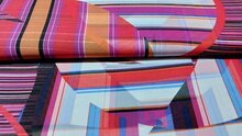 - Couponstof - Kleurrijke chiffonachtige stof met lijnen en vierkanten