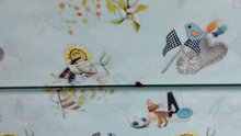 - Mint groene katoenen stof met afbeeldingen van dieren en voorwerpen
