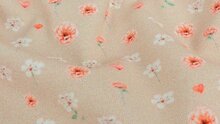 Deze taupe tricot stof met bloemen is een soepele, comfortabele jersey stof met een tijdloos bloemendessin. Ideaal voor baby- en kinderkleding én stijlvolle damesmode.