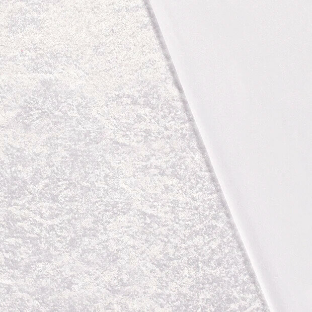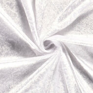 Luxe witte crushed velvet stof voor een zachte, glanzende look. Perfect voor feestkleding, woonaccessoires en meer. Goede kwaliteit, makkelijk te verwerken en voordelig geprijsd bij Stoffenland.