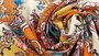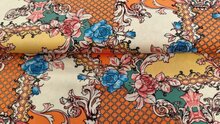 - Viscose Chally Stof – Bloemenprint in Oranje, Groen, Blauw & Ecru – 100% Viscose