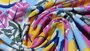 - Veelkleurige viscose stretch stof met veren print