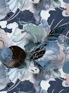 Het digitaal bedrukte watercolor patroon is een lust voor het oog. Zachte tinten blauw vormen de basis, terwijl accenten van wit, grijs en groen voor diepte en dimensie zorgen. De abstracte vormen en vlekken creëren een dynamisch effect dat elke creatie uniek maakt.
