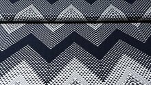 Zwart-witte viscose jersey met driehoeken. Zachte, rekbare stof, perfect voor shirts, jurken, rokken en tops. Comfort & stijl in één!